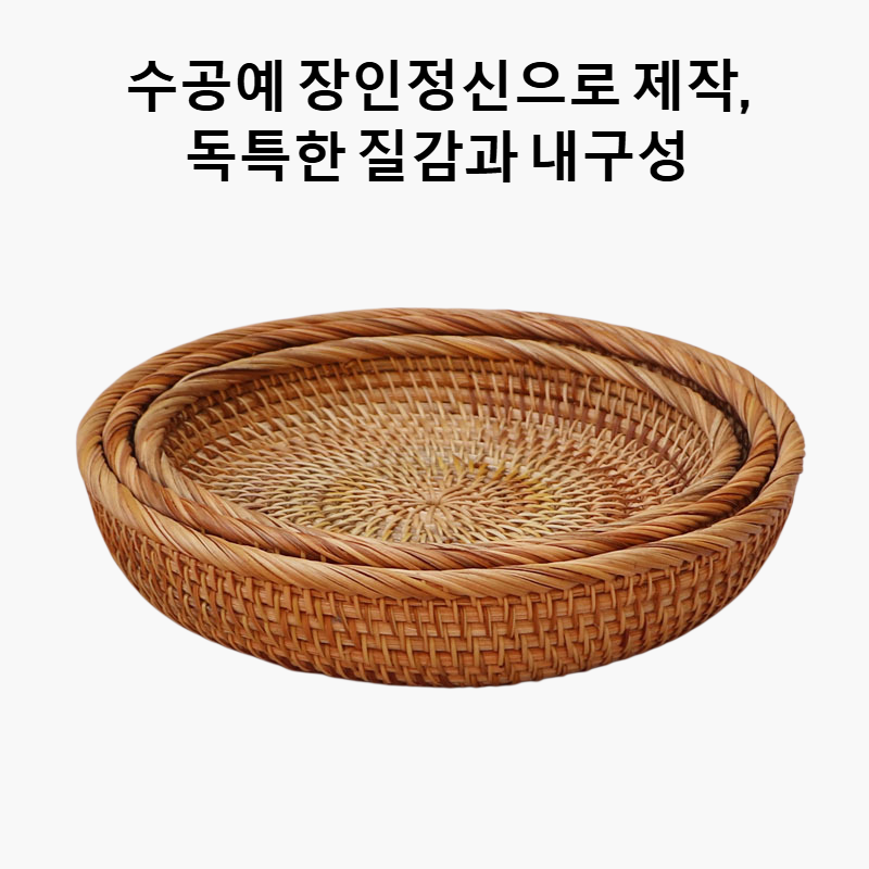 내추럴 라탄 과일 접시, 친환경 소재 사용, 통기성 우수, 다양한 과일 보관에 적합, 인테리어 소품으로 활용 가능